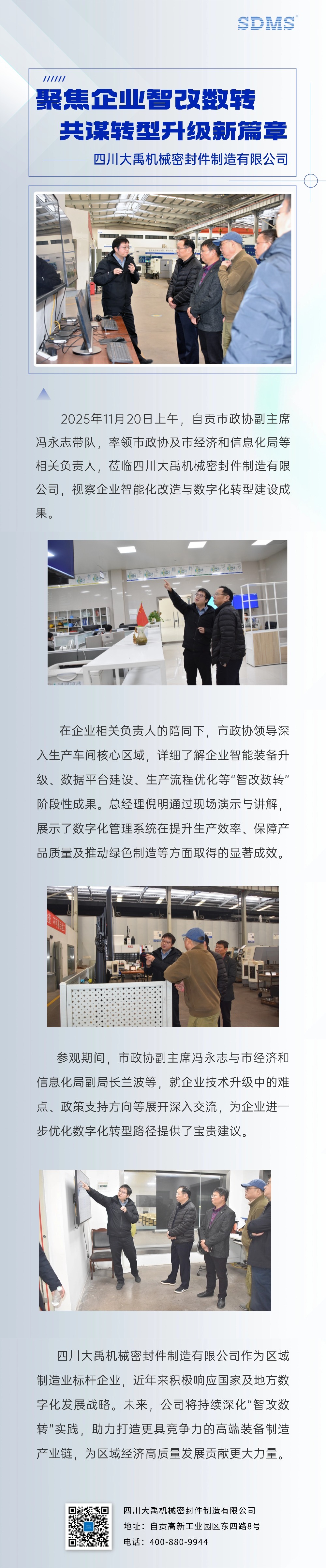 市政协领导莅临四川大禹机械密封件制造有限公司视察"智改数转"建设情况